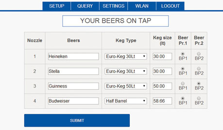 The S-Tap beer dispensing system can facilitate large or small operations by offering a single tower, dual tower or a 4-nozzle stainless steel tower. The bottom fill technology and push lever switch positioned behind the dispense nozzle activates and enables a 4-second pint pour with up to 98% keg yield. The digital keypad with indicators and alarms, provide the user with information for maintaining endless, efficient service. The integrated web server provides quick, real-time data anytime and anywhere with LAN integration through the ethernet or Wi-Fi.